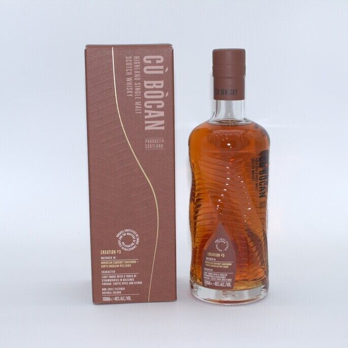 The Tomatin Cu Bocan Creation #3 is an exceptional single malt Scotch whisky that continues the innovative spirit of the Creation Series. This release is aged in a unique combination of Moroccan Cabernet Sauvignon and North American Rye casks. The unusual cask pairing gives the whisky a distinctive character with notes of rich fruit, spice, and subtle smokiness.