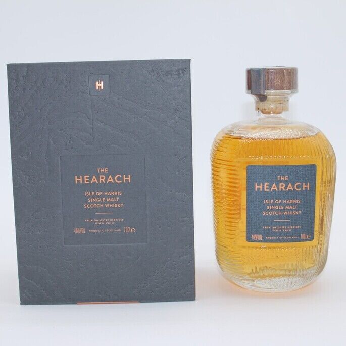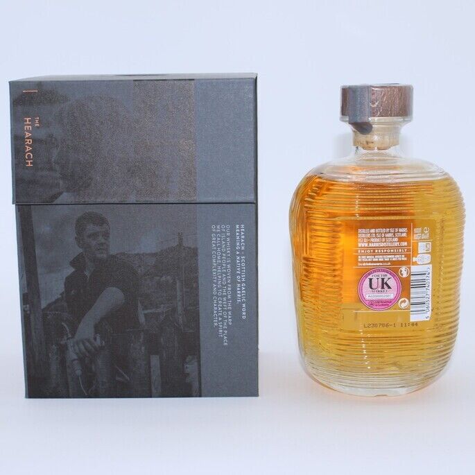The Hearach is the first, historic single malt whisky from the Harris distillery and the Isle of Harris. Bottling began on the 25th of May 2023. Each batch has natural variation due to individual choice of casks and differing 'marrying' periods. Each batch is vatted from Heaven Hill (21%), Buffalo Trace (64%) Oloroso (11%) and Fino (4%) casks. Batch 4 - Married at 48.2% for 18 weeks and 4 days. One of only 11,545 bottles. This bottle was bottled at 46% between the 6th and 19th of July 2023.