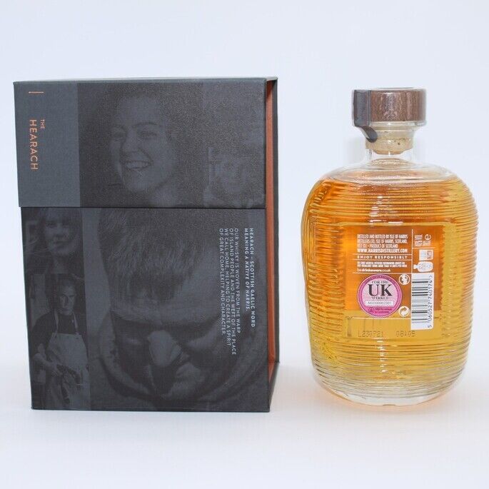 The Hearach is the first, historic single malt whisky from the Harris distillery and the Isle of Harris. Bottling began on the 25th of May 2023. Each batch has natural variation due to individual choice of casks and differing 'marrying' periods. Each batch is vatted from Heaven Hill (21%), Buffalo Trace (64%) Oloroso (11%) and Fino (4%) casks. Batch 5 - Married at 48.1% for 19 weeks and 4 days. One of only 12,326 bottles. This bottle was bottled at 46% between the 19th of July and 1st of August 2023.