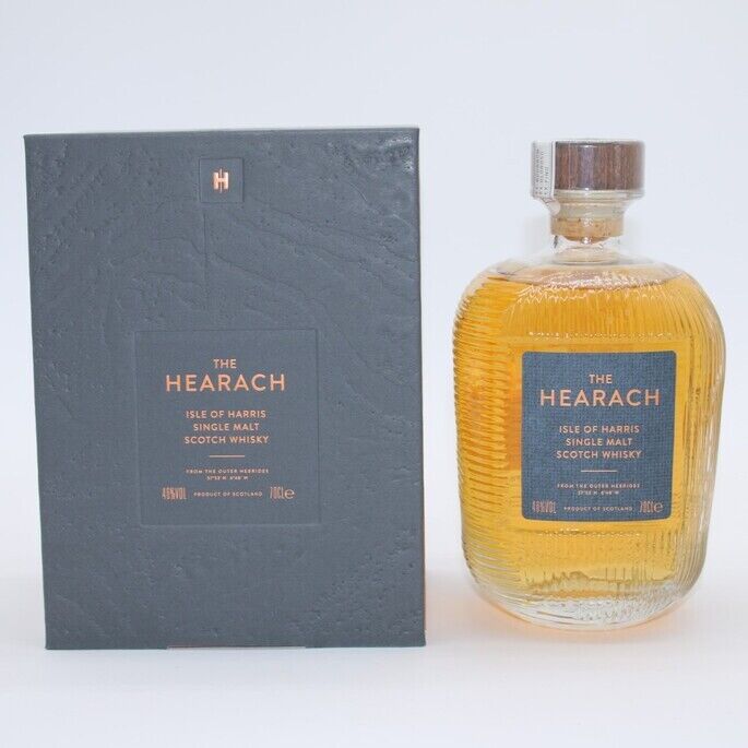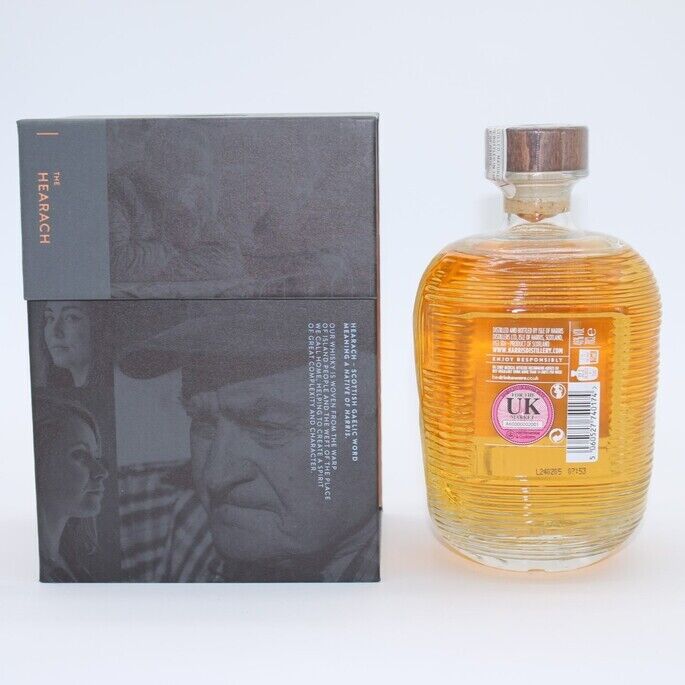 The Hearach is the first, historic single malt whisky from the Harris distillery and the Isle of Harris. Bottling began on the 25th of May 2023. Each batch has natural variation due to individual choice of casks and differing 'marrying' periods. Each batch is vatted from Heaven Hill (21%), Buffalo Trace (64%) Oloroso (11%) and Fino (4%) casks. Batch 10 - Married at 48% for 17 weeks and 6 days. One of only 12,058 bottles. This bottle was bottled at 46% between the 31st of January and 14th of February 2024.