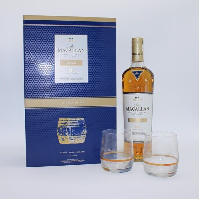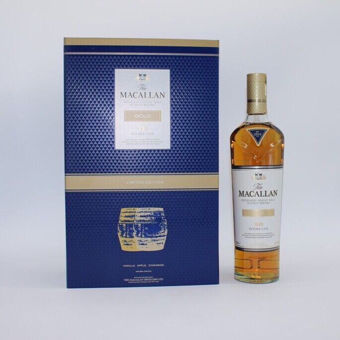 The Macallan Gold Double Cask is a distinctive single malt Scotch whisky, part of The Macallan's Double Cask range. This whisky is crafted from a blend of whiskies aged in a combination of American and European Oloroso sherry seasoned oak casks. The result is a whisky with a burnished gold color, showcasing the natural gradation of color that occurs during maturation.