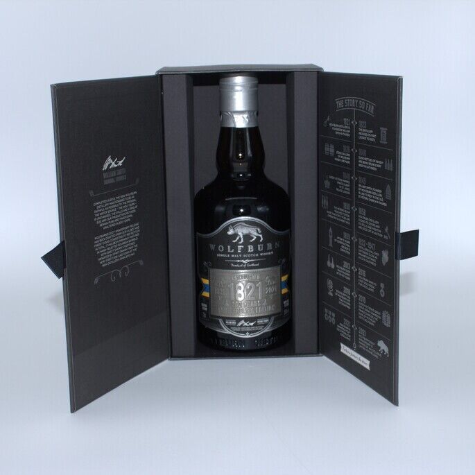 The Wolfburn 1821 bottling is a special limited edition whisky celebrating the 200th anniversary of the original Wolfburn Distillery, established in 1821. This unique expression is a blend of whiskies aged for 10 years and matured in first-fill Oloroso sherry hogsheads. With only 1,821 bottles produced, it stands as a commemorative release.