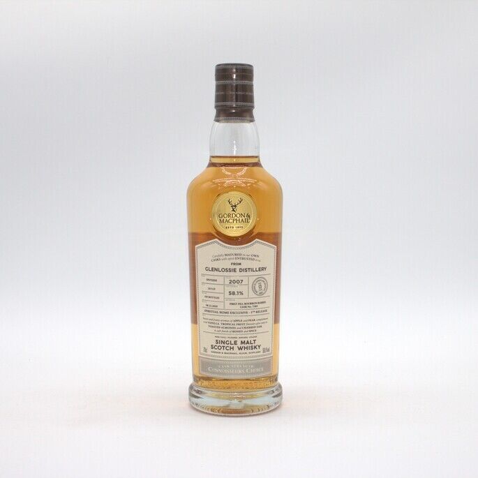 The Glenlossie 2007 Gordon and MacPhail 13 Year Old Spiritual Home Exclusive - 5th Release. This whisky is renowned for its rich and complex flavour profile, featuring enticing notes of spice, fruit, and oak. Its high ABV delivers a bold and satisfying experience, making it a treasured addition to any whisky collection.
