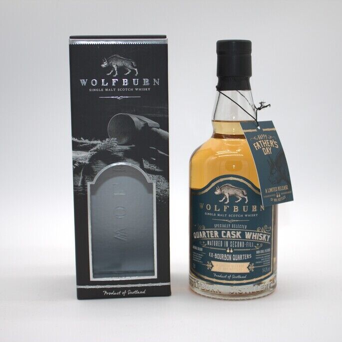 A special 2021 release from Wolfburn to celebrate Father's Day. This single malt was matured in in ex-bourbon quarter casks. Limited to 980 bottles.