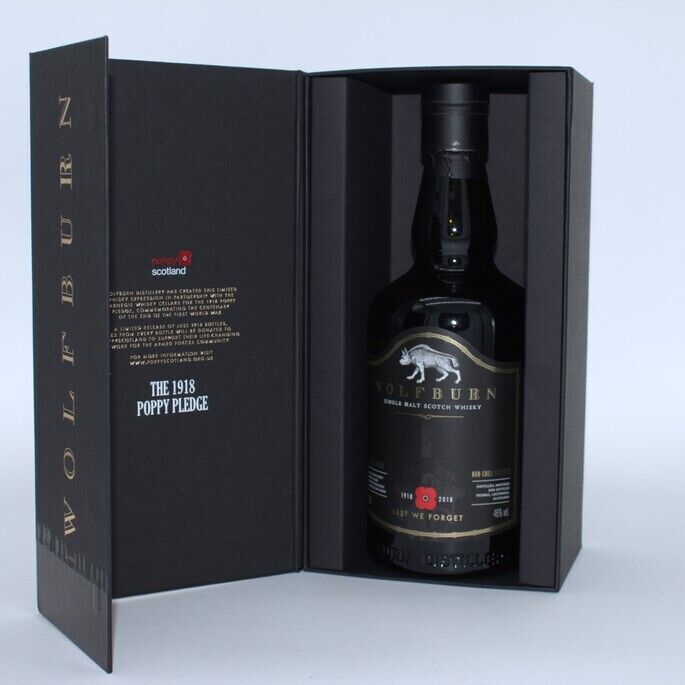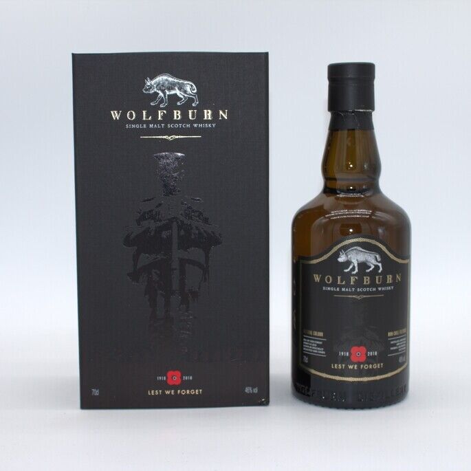 A limited edition release from Wolfburn Distillery in 2018 commemorating the 100th anniversary of the conclusion of the First World War. In total, 1,918 bottles were produced, and were available exclusively at the distillery and through the Carnegie Whisky Cellars in Dornoch.