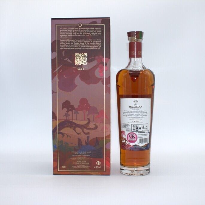 The Macallan Litha is a single malt Scotch whisky that represents the coming together of Scotland and Spain. It is exclusively matured in first fill sherry seasoned oak casks from Jerez de la Frontera, Spain. This unique maturation process gives the whisky its complex flavours and deep gold colour, with notes of butterscotch, vanilla, chocolate, citrus, and tropical fruits on the nose. The palate offers vanilla ice cream topped with berry compote, toasted oak, wood spice, salted caramel, and pecans. Medium finish with lingering fruits, vanilla, and oak.