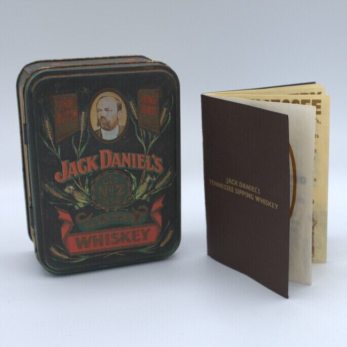 Two miniature bottlings of Old No.7 from the 1980s, presented in a Hudson & Scott tin gift box.